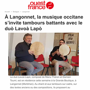 Ce sont leurs parcours respectifs et leur sensibilité commune qui ont rendu complices et complémentaires les deux chanteurs-percussionistes. En revisitant le répertoire occitan, Damien Toumi et Mànu Théron recomposent l’imaginaire tronqué particulier aux cultures périphérisées, l’immergent joyeusement dans une modernité qui n’a rien de formaliste et en extraient le principe et l’elixir.