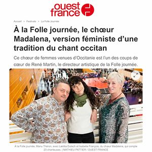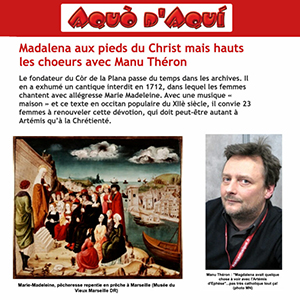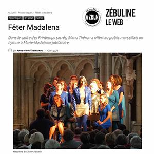 Madalena est une adaptation musicale pour choeur du texte marseillais emblématique de la Cantinella de Sancta Maria Magdalena, poème processionnel racontant la légende de l’arrivée de la Madeleine à Marseille.