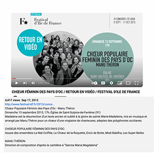 Confiée à un chœur de vingt-trois femmes, l’écriture parvient à magnifier chacune des interprètes en dehors et au sein du collectif. Ce dernier, constitué de chanteuses occitanes qui viennent de tous les Pays d’Òc méridionaux – de Toulouse à Toulon – s’empare de la musique pour l’interpréter avec passion, chaleur et générosité, dans une musicalité qui évoque la spiritualité des musiques populaires de méditerranée. Des percussions accompagnent les moments les plus exaltés et contribuent à faire entendre ce que la ferveur engage chez les interprètes, en privilégiant toujours l’expressivité et l’humanité de leur chant.