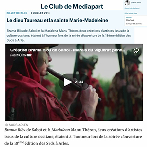 Mànu Théron a composé une musique qui offre à ce chant la possibilité d’être aujourd’hui, affranchi de tout dogme et livré à la seule beauté de sa matière textuelle, dans un occitan populaire qui rappelle les poèmes processionnels d’Italie méridionale ou d’Andalousie.